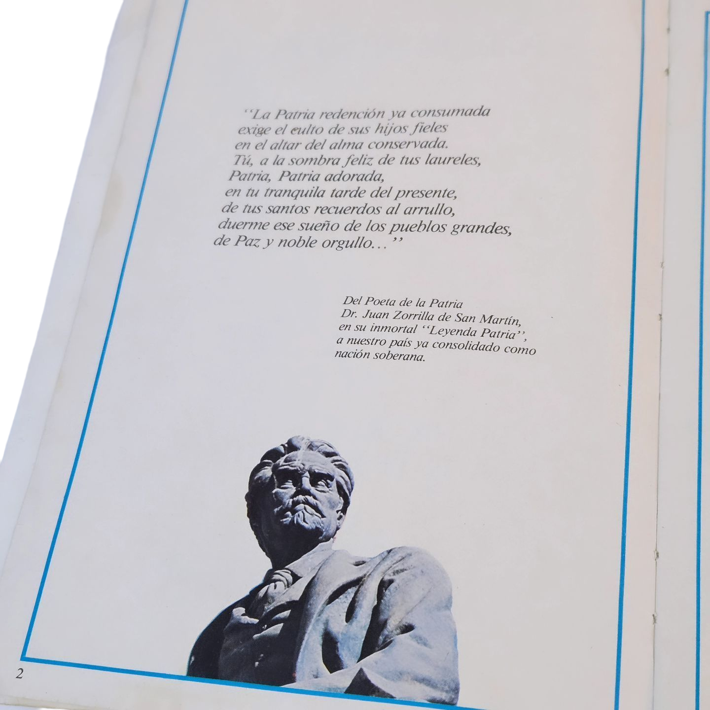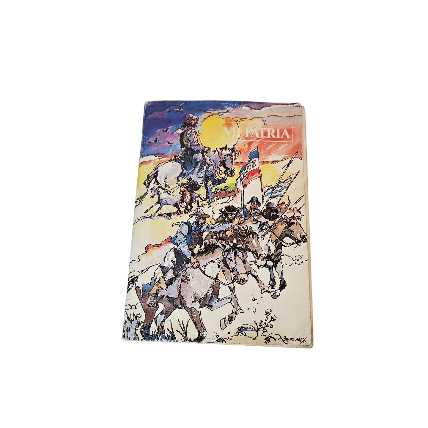 Álbum escolar “Mi Patria”, editado por Saint Hnos. del Uruguay S.A. e impreso por Mosca Hnos., con el sello Águila Saint en la primera página. Una pieza educativa que marcó la infancia de muchos uruguayos, pensada para enseñar la historia nacional a través de ilustraciones, poesías y textos patrióticos.
